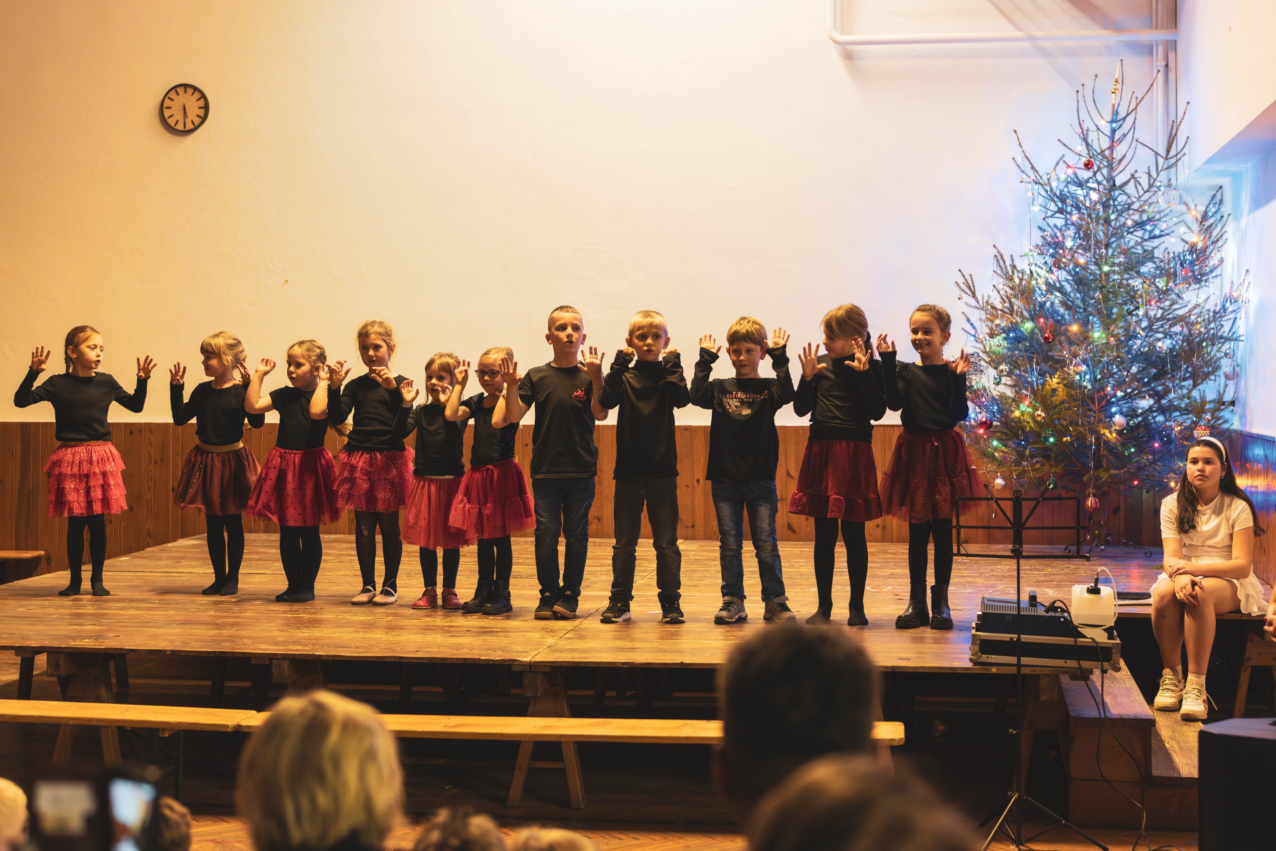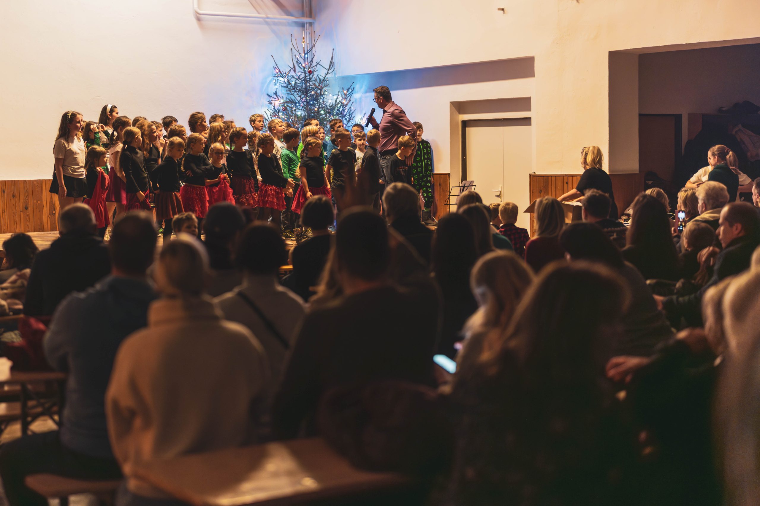 Předvánoční čas v naší škole vyvrcholil 8. 12. 2025 odpoledne tradiční a letos mimořádně zdařilou Vánoční besídkou, kterou si pro své rodiče a blízké připravili děti z mateřské školy a žáci všech tříd základní školy. Místní sokolovna se proměnila v útulné pódium plné světel a vánoční atmosféry.